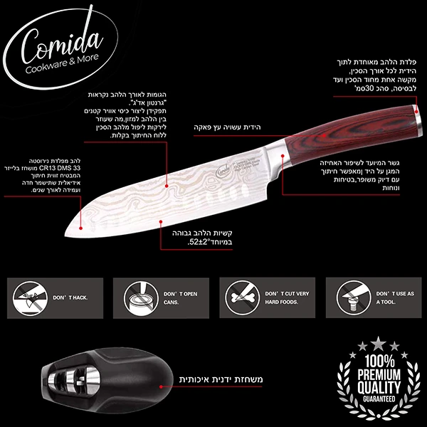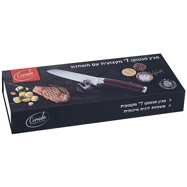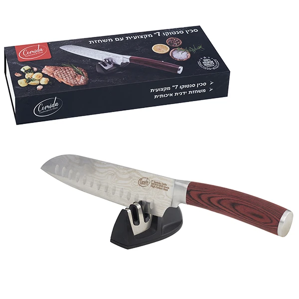 סט סכין סנטוקו מקצועית עם חריטה אישית כולל משחיז