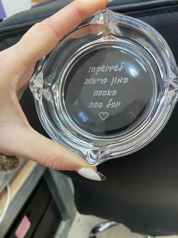 כדאי מאוד לחרוט את שם מקבל/ת המתנה, ניתן להוסיף איור שקשור לנושא.