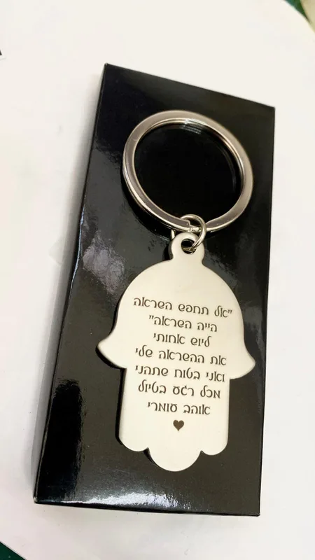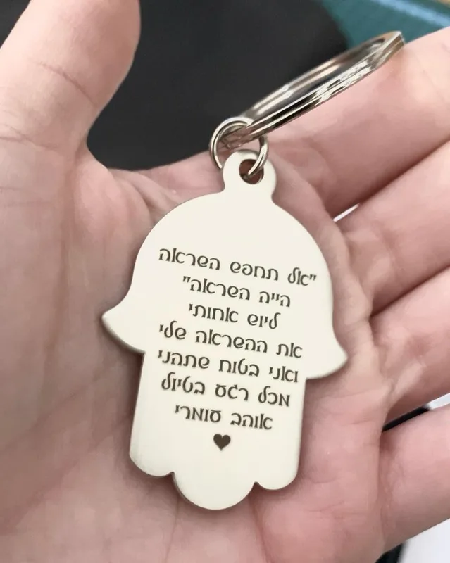 מחזיק מפתחות מתכת - חמסה תפילת הדרך עם חריטה אישית