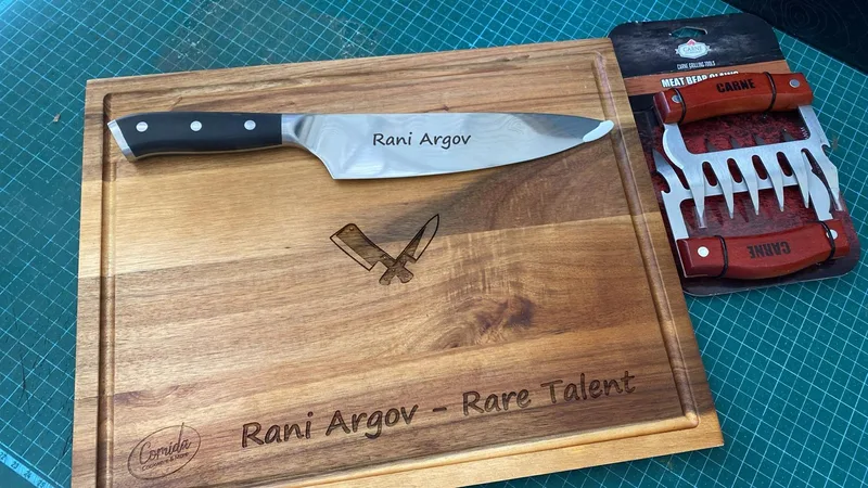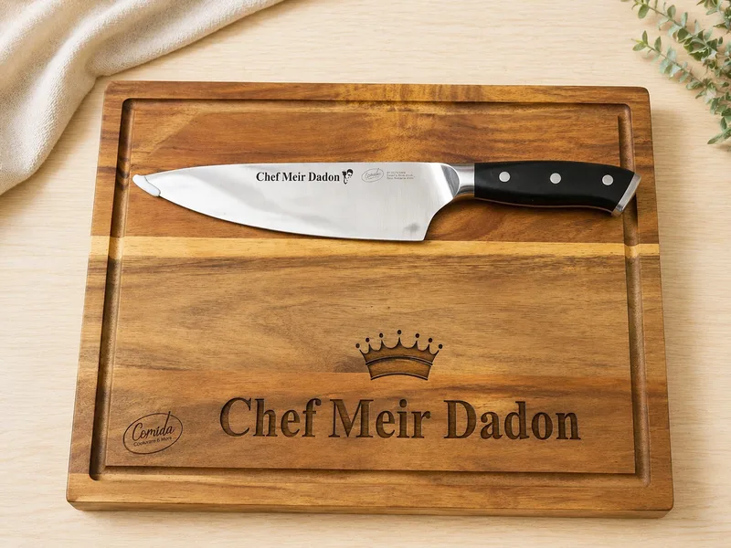 בוצ'ר עץ שיטה איכותי עם חריטה אישית